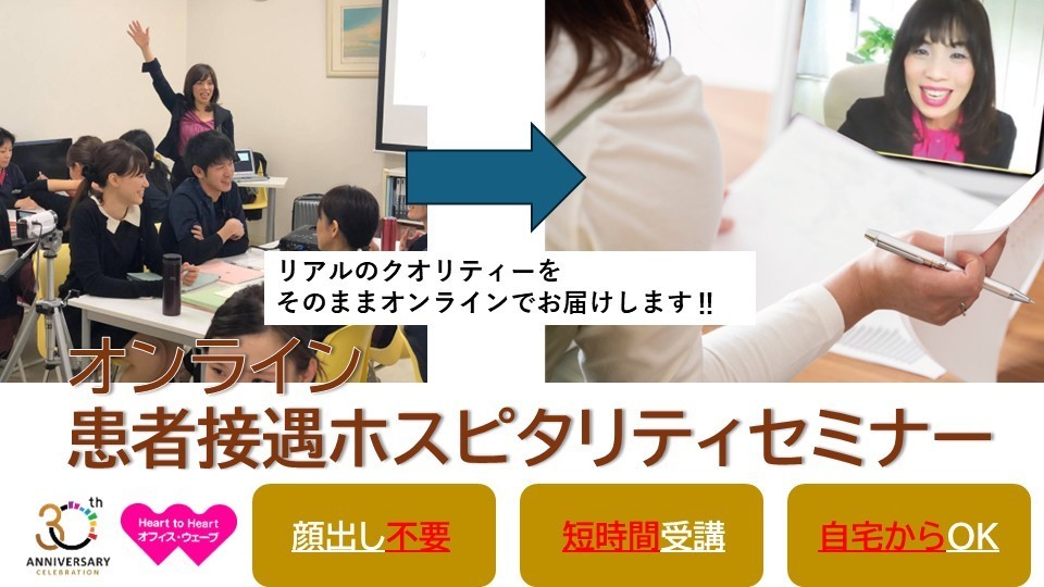 リアル開催で人気「患者接遇ホスピタリティセミナー」を3時間のオンラインへリニューアル‼